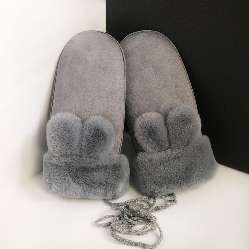 Gloves winter ladies Korean cute suede with fingers hanging neck student cycling plus velvet padded warm cotton gloves