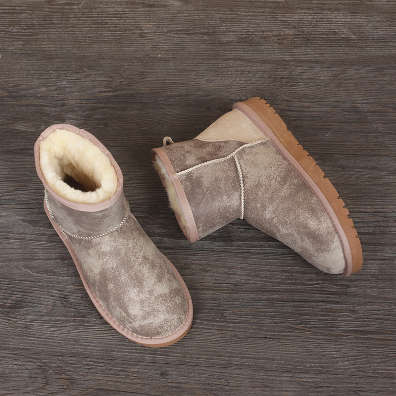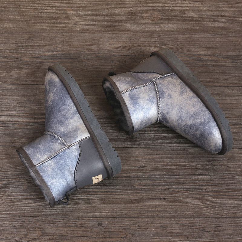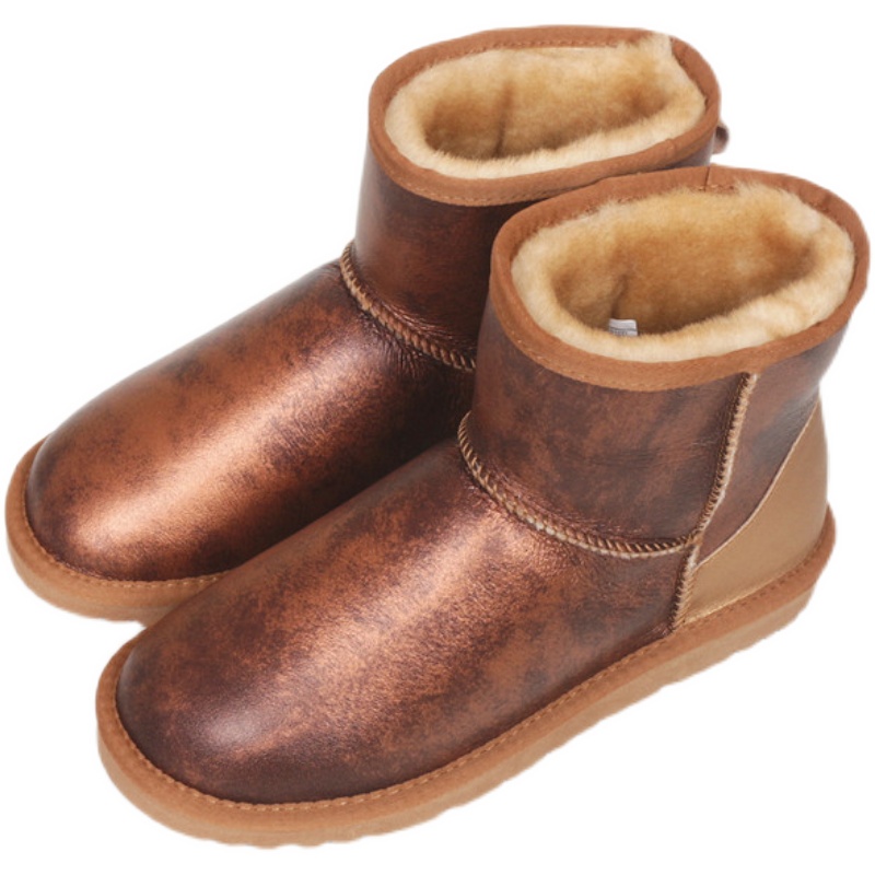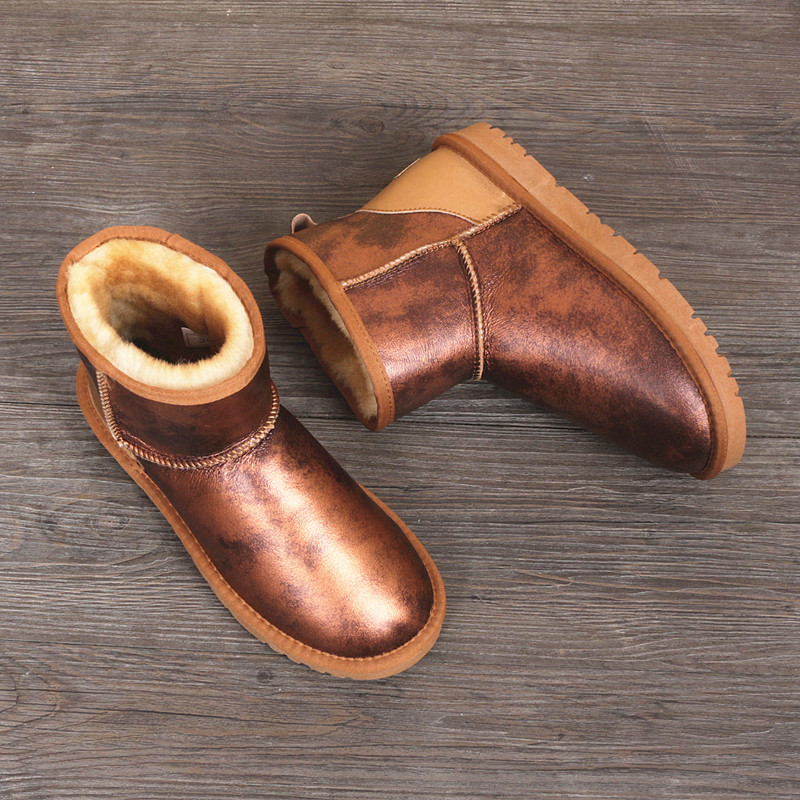 Sheepskin and fur snow boots men's short tube waterproof and non-slip winter warm wool cotton shoes retro large size snow shoes