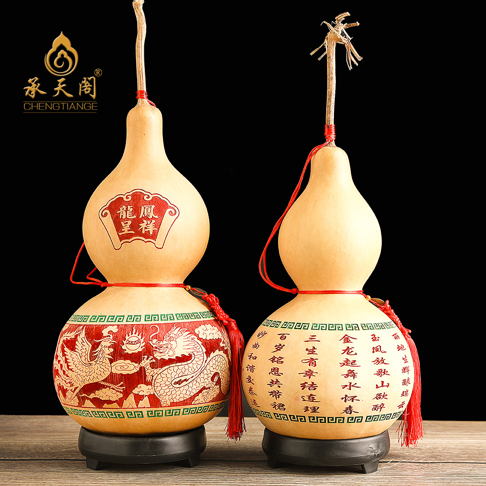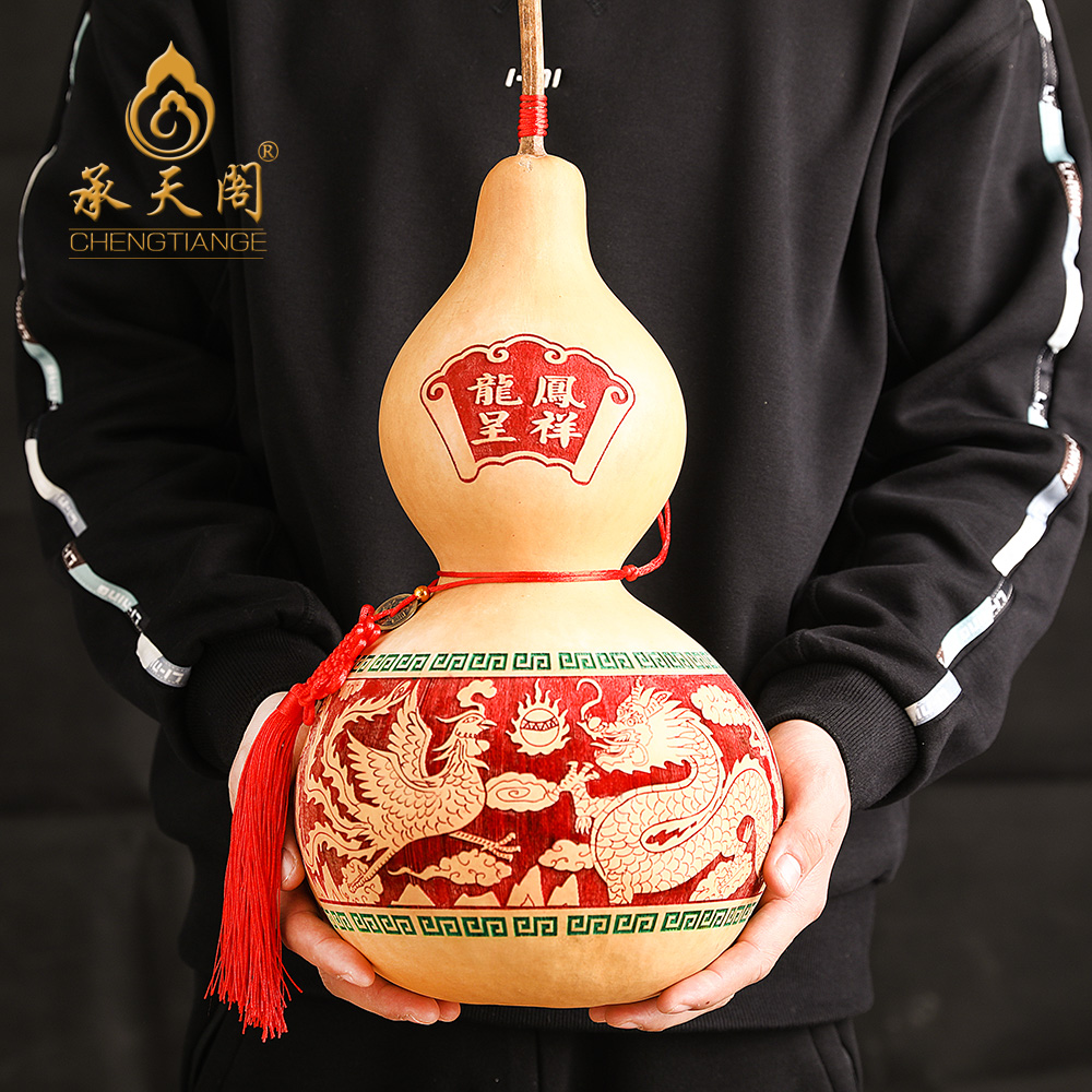 Dragon and Phoenix Chengxiang Natural Gourd Ornament Living Room Entrance Villa Wedding Housewarming Auspicious Gift Home Decoration