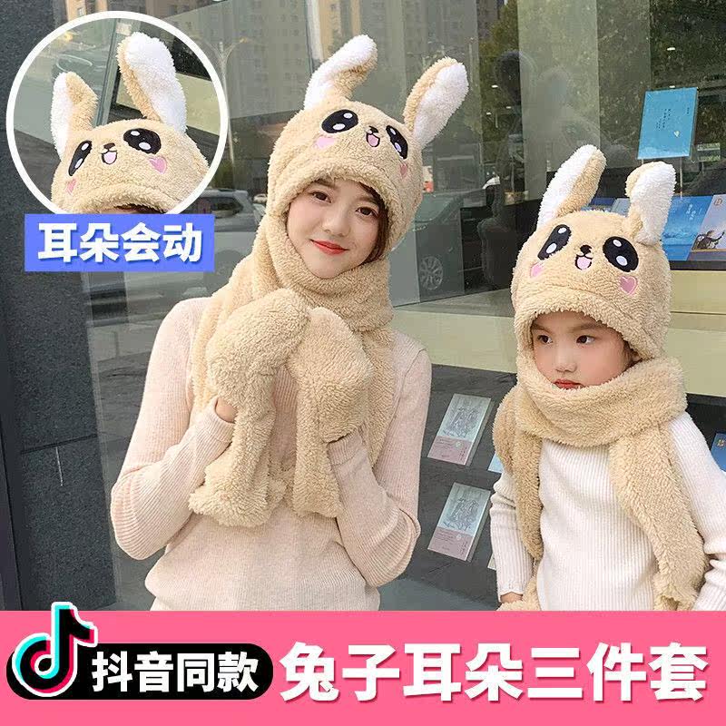 Hat women autumn and winter scarf gloves three-piece set children will move rabbit ears students plus velvet scarf ear protection