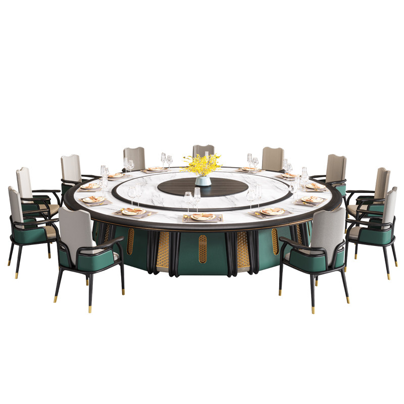 Jinhaomen marble electric hotel dining table large round table new Chinese commercial slate hot pot table dining table and chair combination