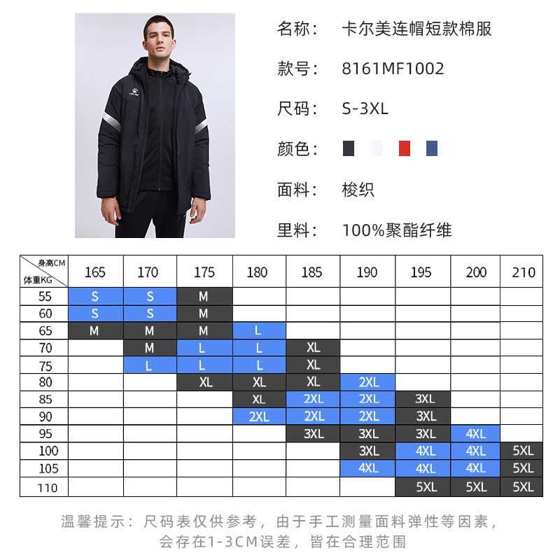 KELME KELME official flagship cotton jacket football cotton jacket winter training short version cotton jacket non-down jacket men