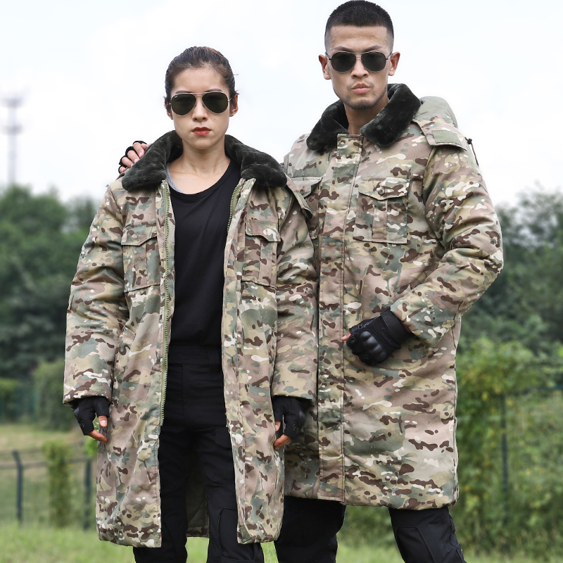 Long version camouflage coat men's winter lengthened over-the-knee cold-proof warm military cotton coat thickened labor insurance work clothes padded jacket