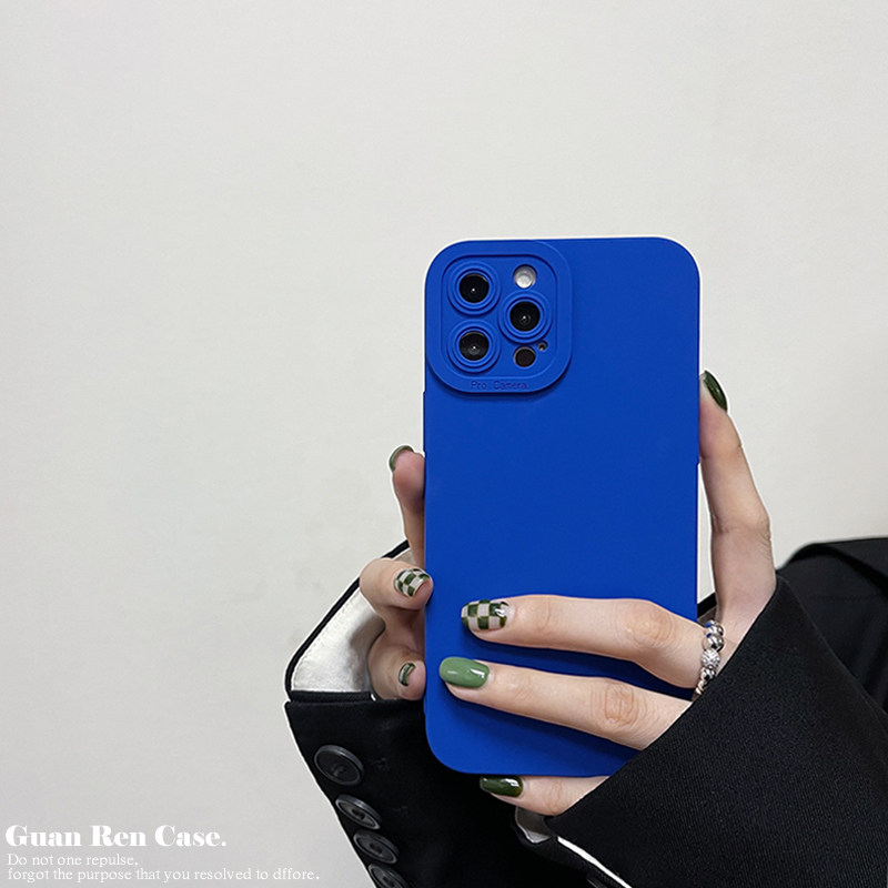 ins senior sense Klein blue apple 13promax mobile phone protection shell new pure color silicone iPhone13pro max women's anti-fall protective sleeve 12pro lens