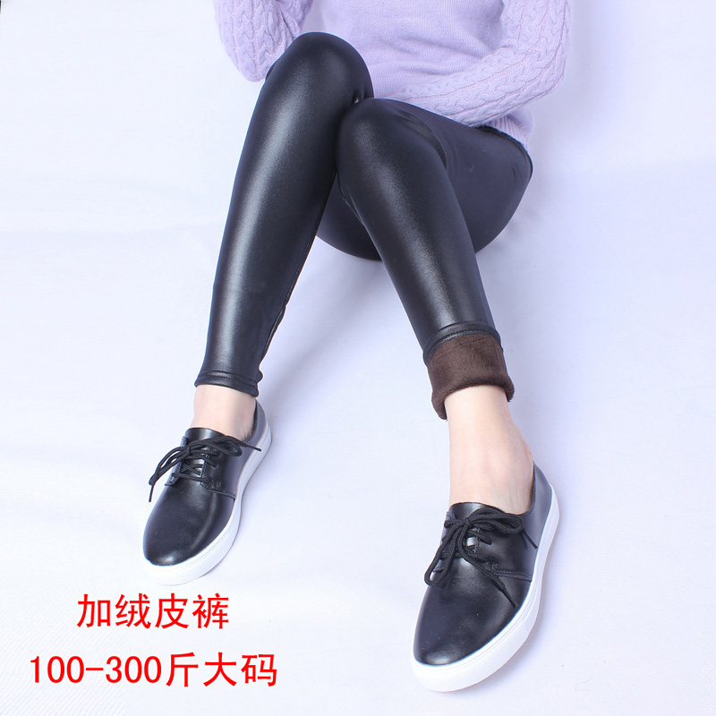 200 Catty Mmm Inner Hitch Pants Female Imitation Leather Pants External Wear Plus Fattening Extra Autumn Winter Plus Suede Thickened High-Slingshot Slim Trousers