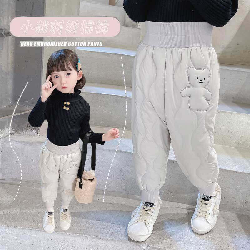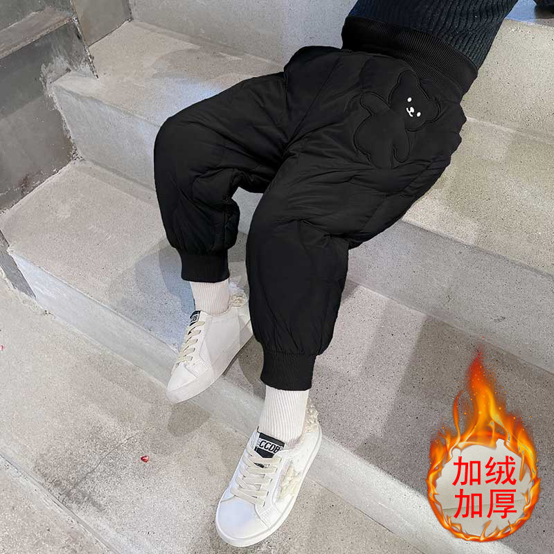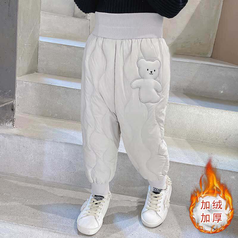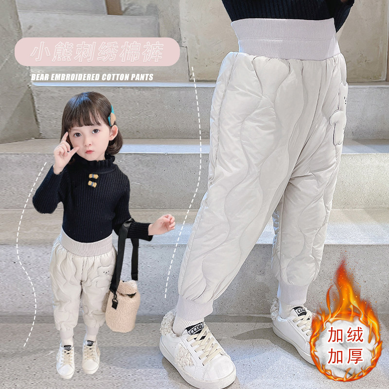 Girls' velvet thickened pants winter children's down cotton children's winter baby cotton pants winter wear a pair for winter