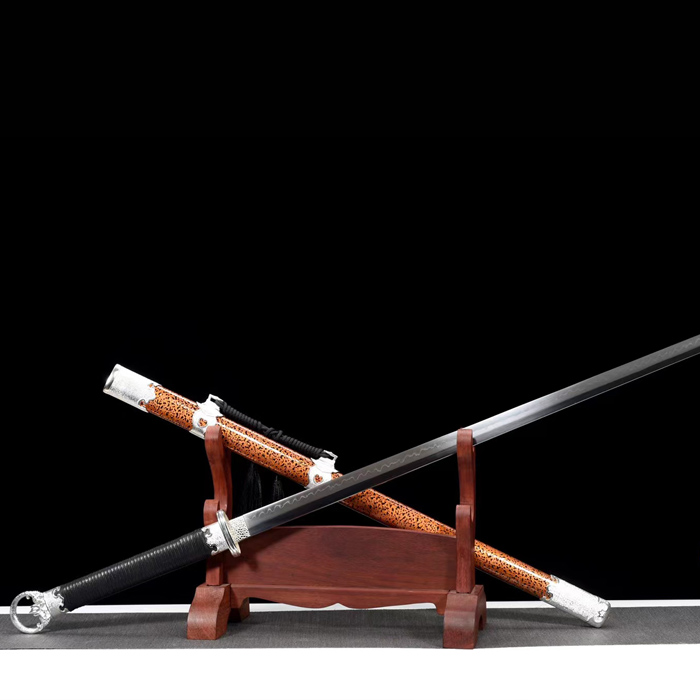 Dragon Springs Town Residence Treasure Sword Tang Cross Knife Embroidered Spring Knife Integrated Knife Sword Tang Sword Outdoor Cutter Body-Proof Martial Arts Knife Unopened Blade