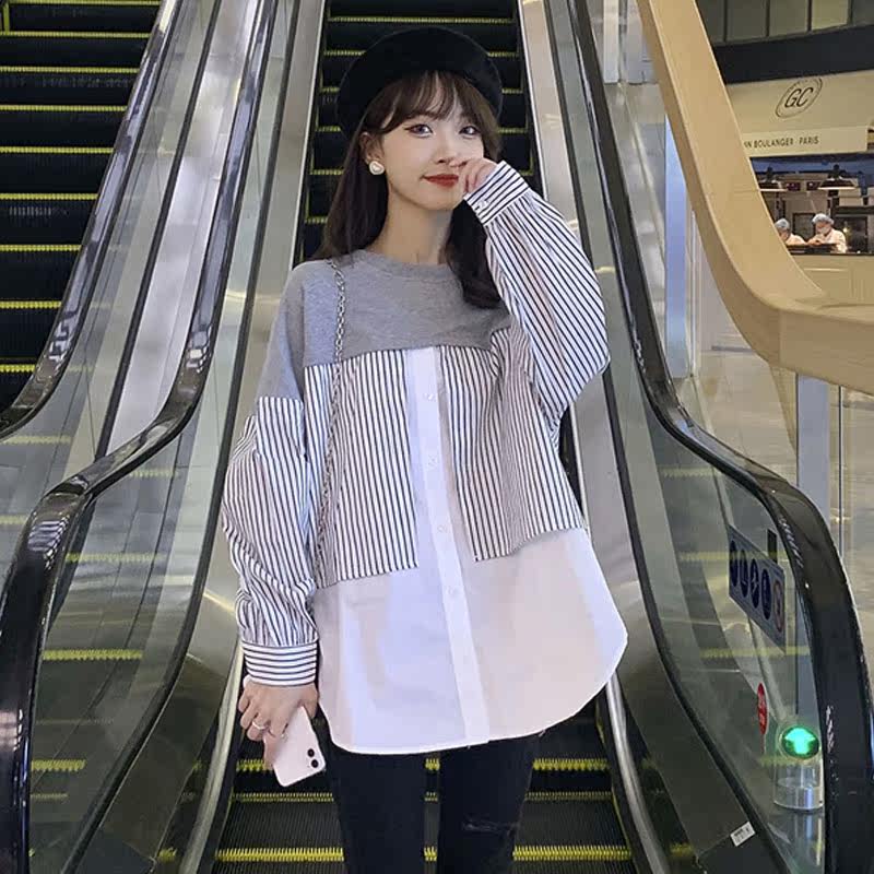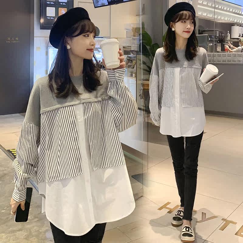 Pregnant woman Autumn Fashion style out for small fresh round collar pregnant woman blouses blouse blouse autumn winter 2021 new long sleeve shirt