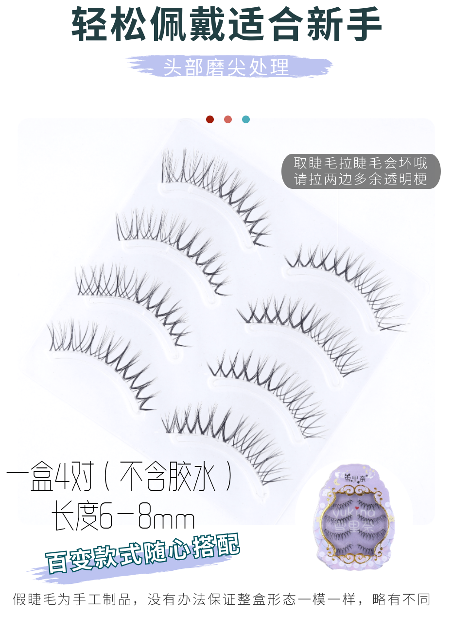Snowinay Fake Mascara Natural Emulation Transparent Stem Slim Silk Thread Eyelash Natural subsection Grinding Tips Eyelash 043
