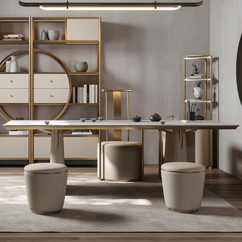 Light luxury tea table stool modern minimalist leather round stool small apartment foot stool living room leisure sofa stool makeup chair