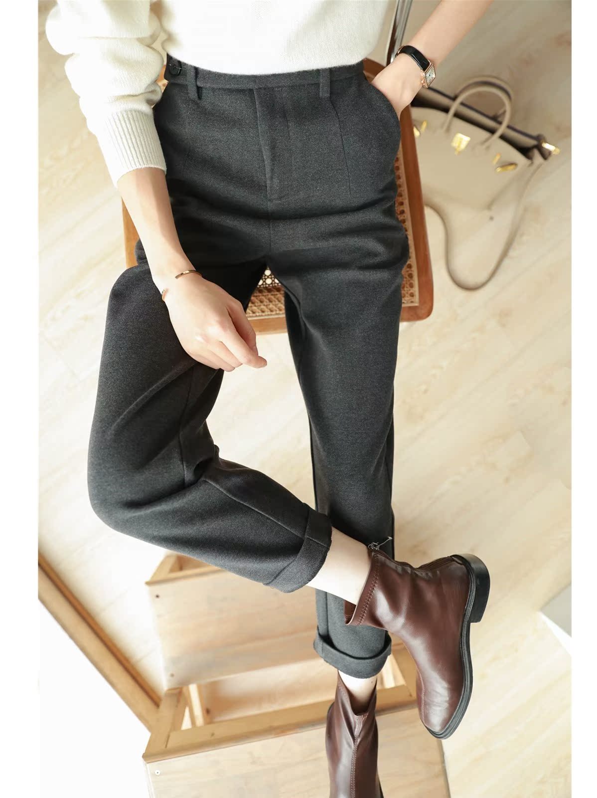 Gafer thickened pants children Double face fur Smoke Tubes Pants 2022 New Loose High Waist Casual Pants West Pants Lady Autumn Winter