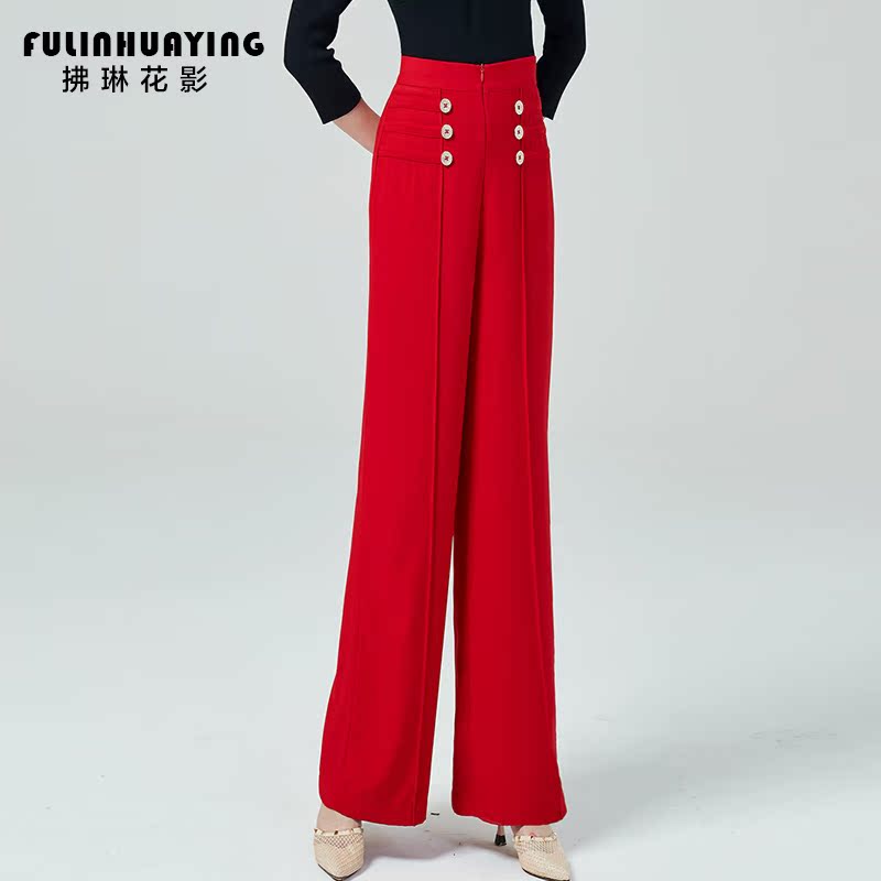 Predawn floral upscale new Morden dance pants black high waist pants with hip-display slim Latin dance pants practice
