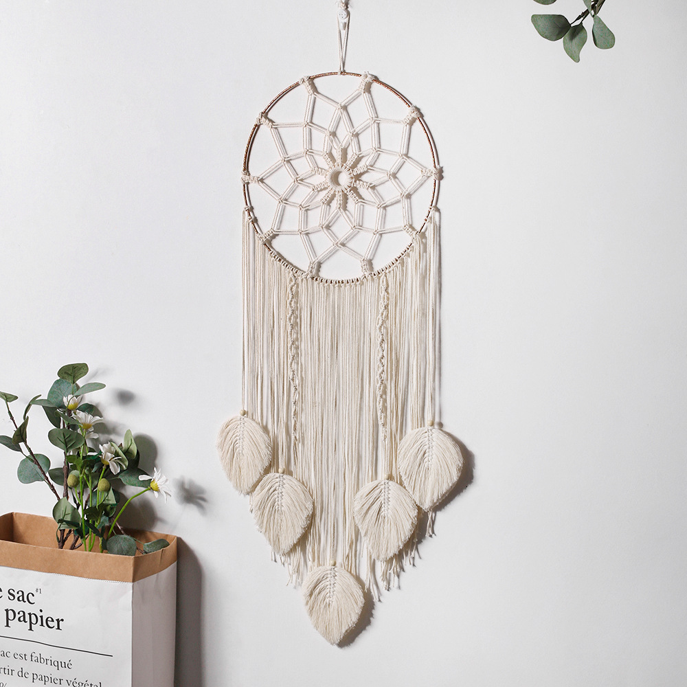 Ins Nordic style woven wall decoration wall hanging shop dream net Bohemian round dream net leaf pendant decoration