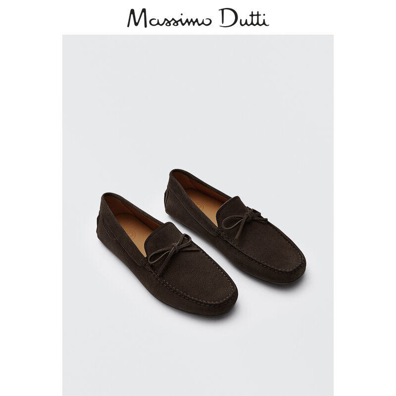 Massimo Dutti Men's Shoes Brown Suede Leather Fashion Casual Lefu Shoes 12303850700