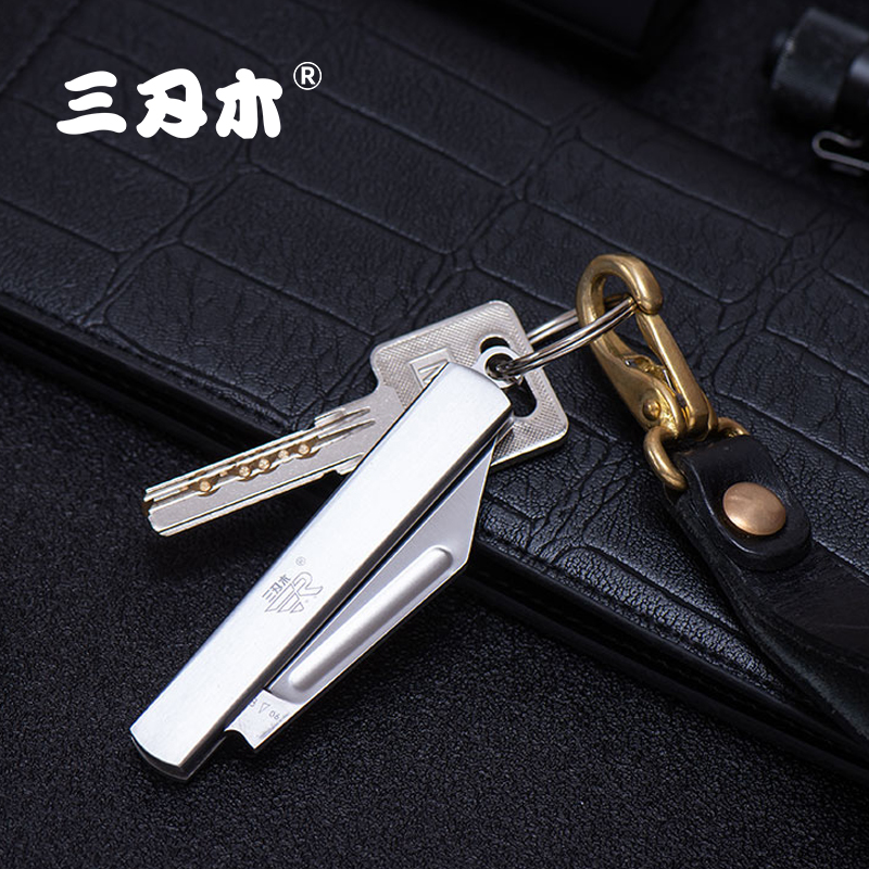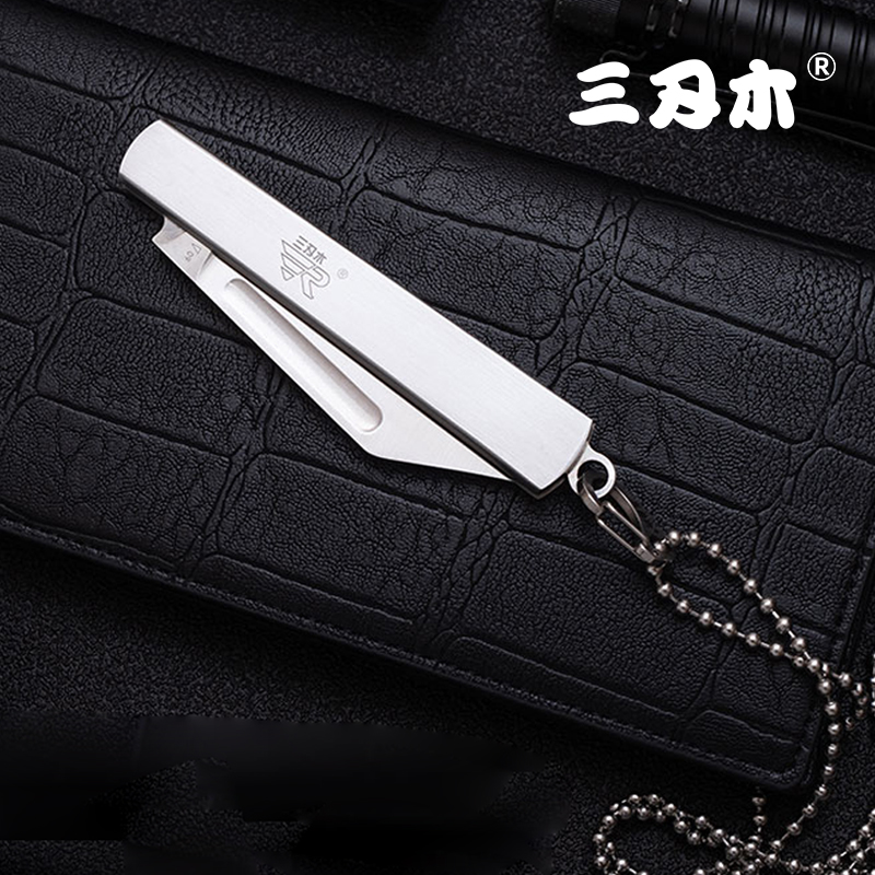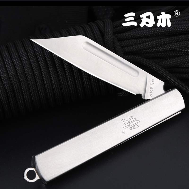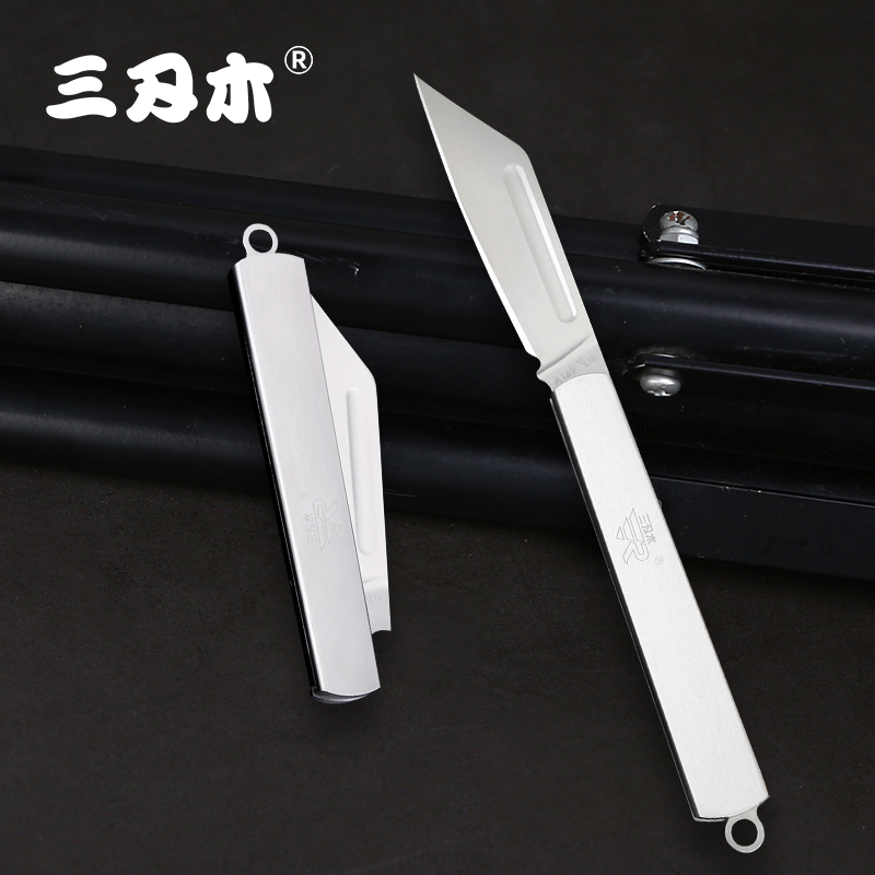 Three-edged wooden folding knife high hardness and sharp portable outdoor knife disassembly express knife portable stainless steel fruit knife