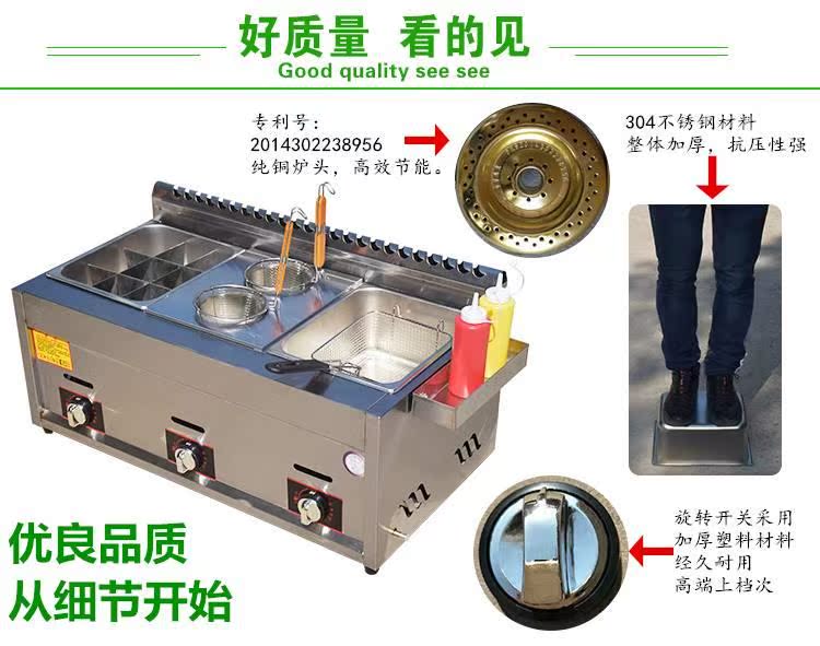 New Gas Guan East Cooking Machine Gas Fryer Cooking Noodle Stove Jute Hot Machine String Aroma Machine Three Cylinders All-in-one
