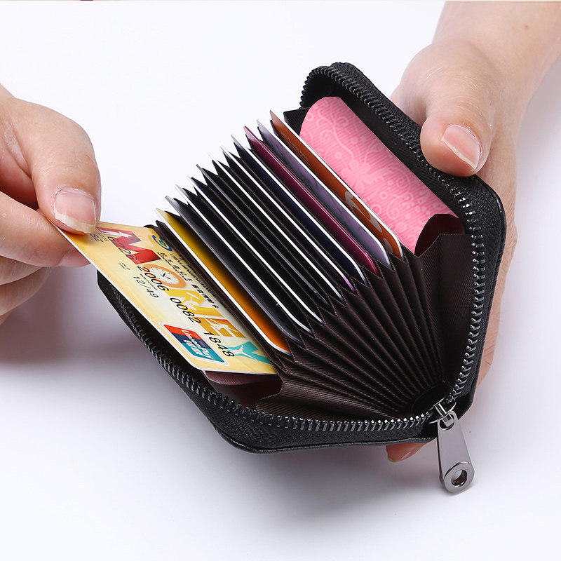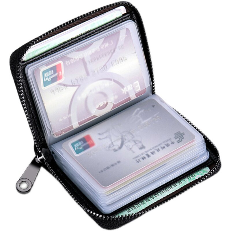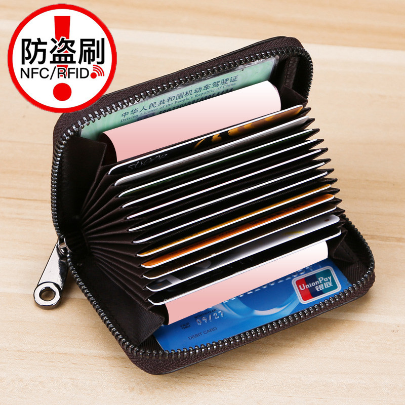 Theft-proof swipe bag for men's genuine leather texture multi-clamping document bit leather set card bag large capacity business card bag cutting sleeve