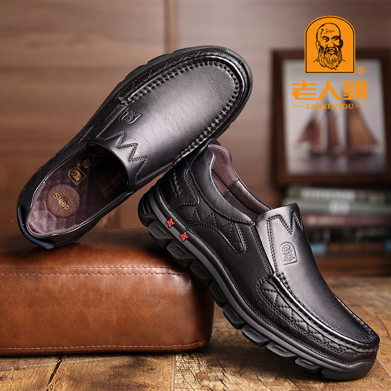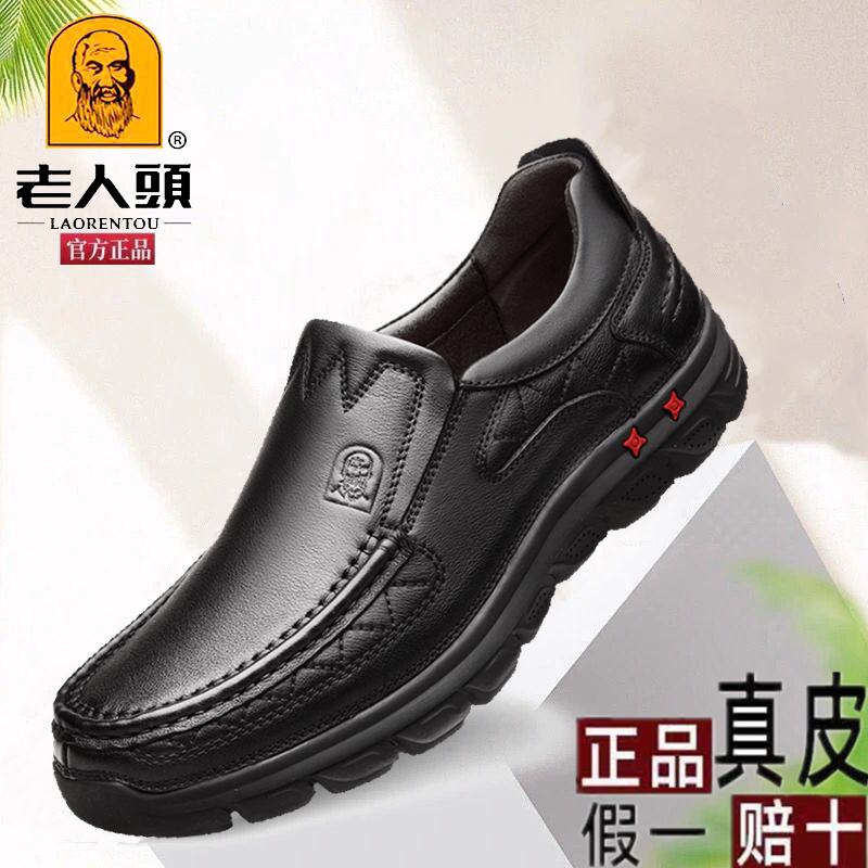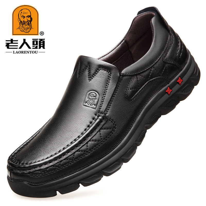 Old man's shoes leather soft soles spring and autumn casual leather shoes anti-slip wear large head wide feet, daddy shoes shoes
