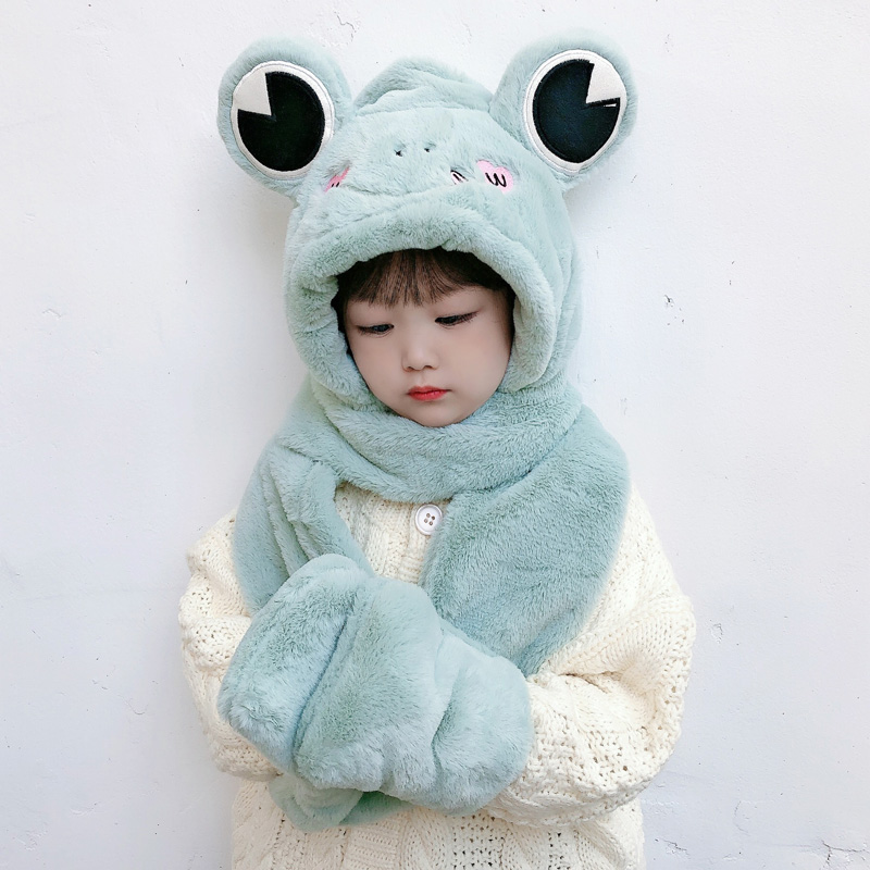 Children's hats, winter plush hats, scarves, gloves, one male and female children, thick warm children's hats, autumn and winter