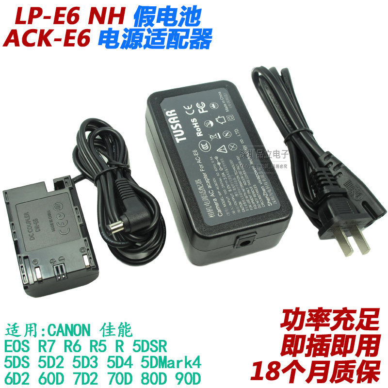 TUSAR Canon LPE6 fake battery R7 R6 R5 5D4 SLR 90D 80D live external power adapter