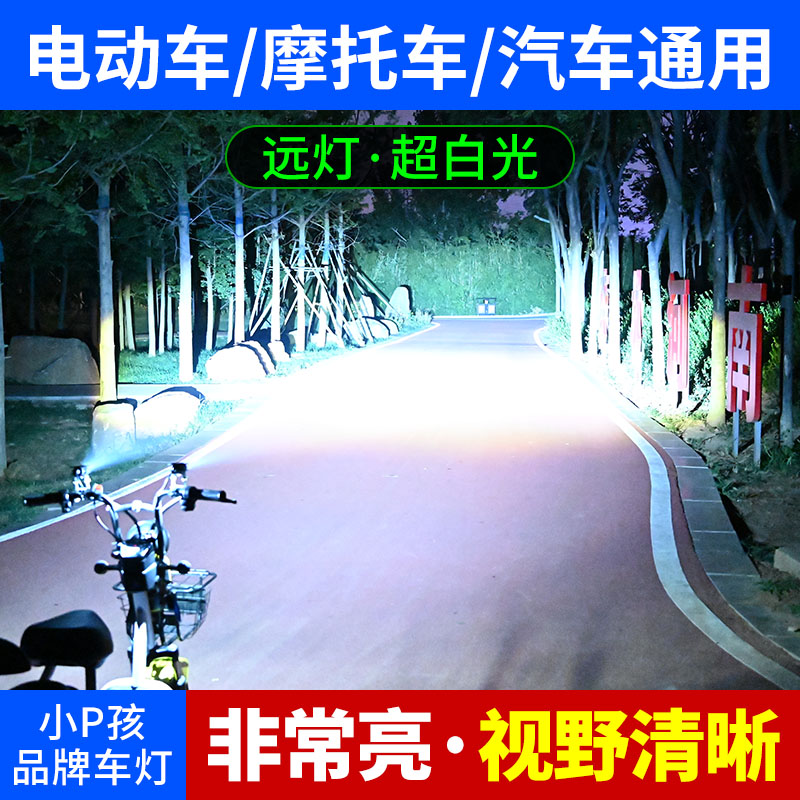 Motorcycle lights electric vehicle spotlights super bright glare LED headlights far and near light integrated 12v60v lens paving lights