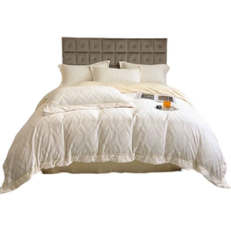 Xiaobai carefully selected A-type Korean-style full-matte three-dimensional carved milk velvet four-piece set