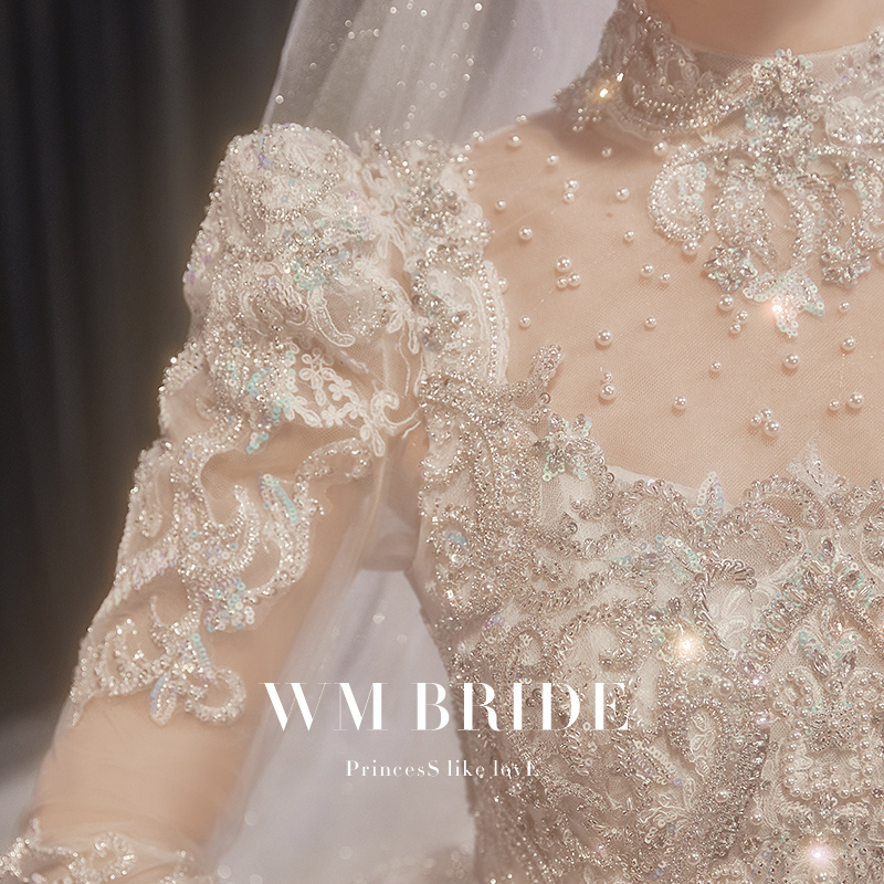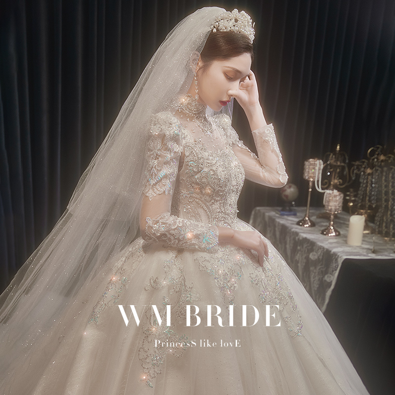 "Stars" wedding dress 2021 new bridal main yarn advanced sense long sleeve heavy industry tail high-end temperament welcome yarn