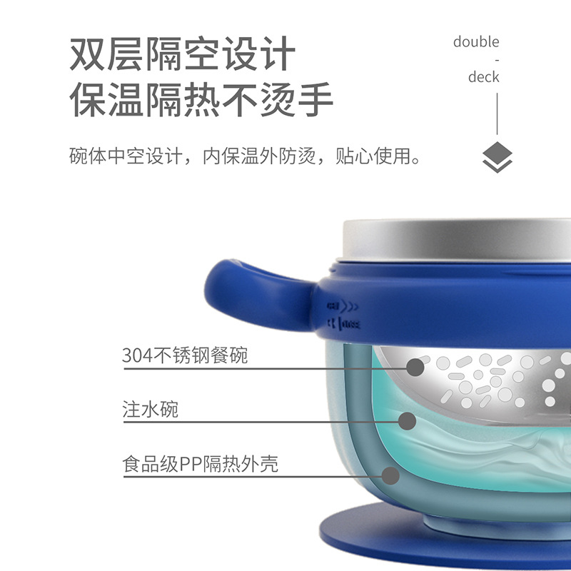 Infant tableware Dutch children's water-filled insulation bowl stainless steel anti-fall anti-scalding silicone suction cup non-staple food bowl set