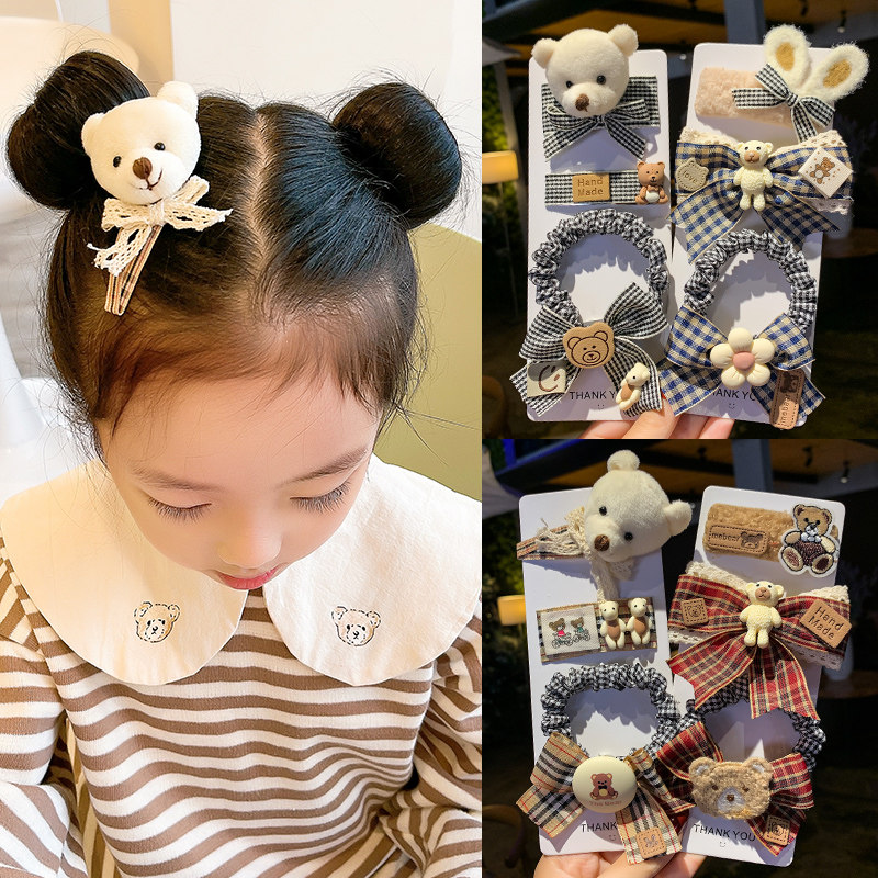Children's rubber band hair ring girl's hair ring plaid bear baby hair clip does not hurt hair clip head rope princess bow hair accessories