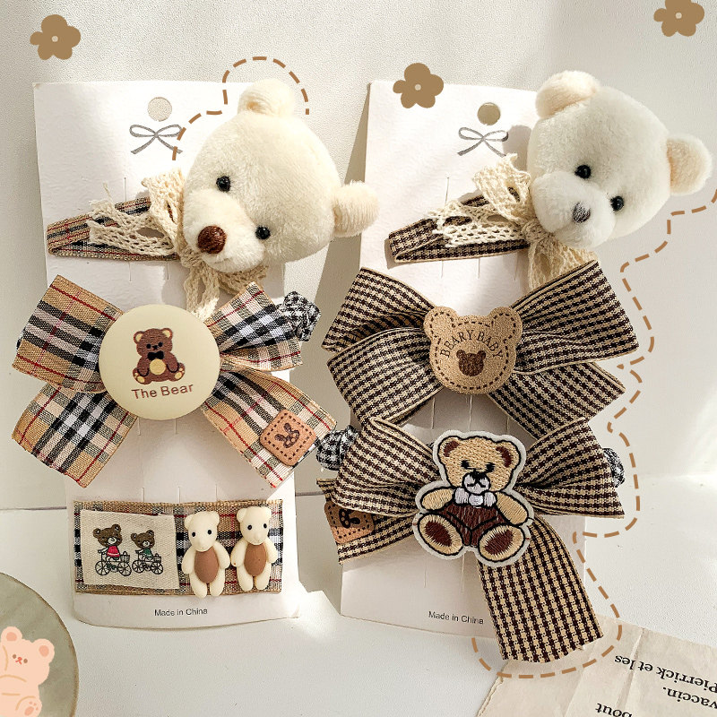 1# khaki bear hairpin 3-piece set 2# curry bear hairpin 3-piece set 3# black bear hairpin 3-piece set 9# flower mesh hairpin 11# mesh red blue ribbon