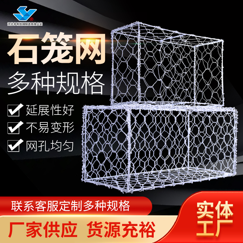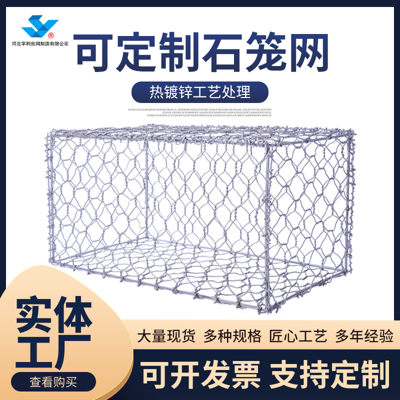 Hot-dip galvanized stone cage net hillside slope protection river flood control solid soil Binge stone cage hexagonal twist filigree mesh customization