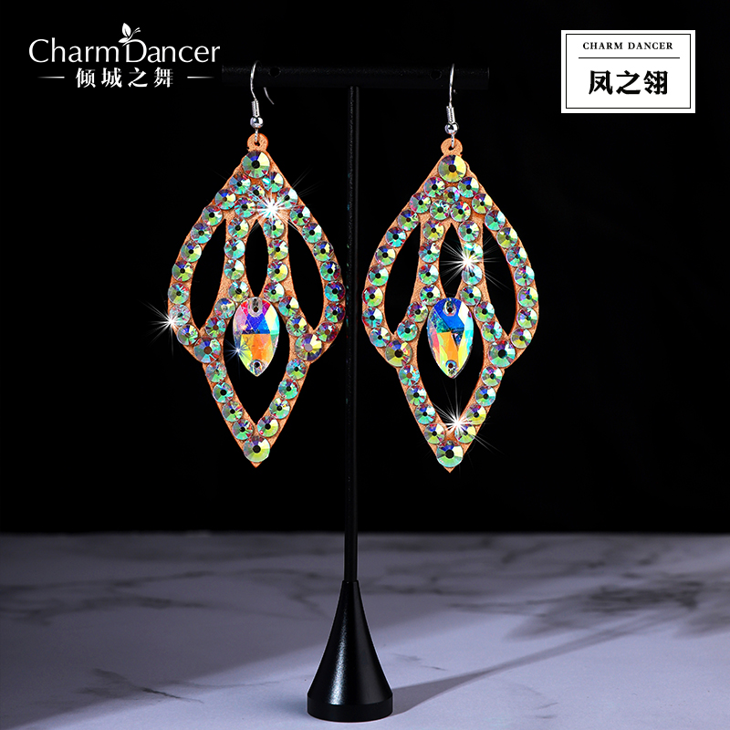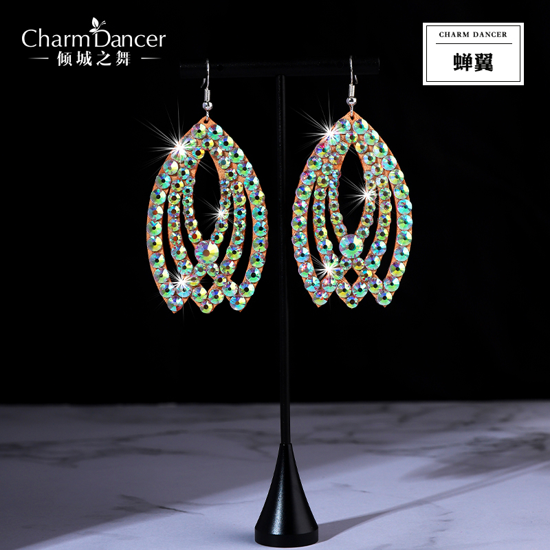 Leaning Town Dance 2022 Spring Summer New Belly Leather Dance Earrings Full-Hand Hot Drill Anti-Allergy Performance Accessories Earrings