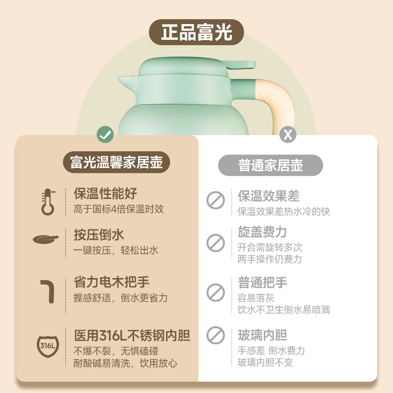 Rich Bright Capacity Insulated Kettle Home 316 Stainless Steel Baby Warm Pot Office Dormitory Student Hot Water Bottle-Taobao