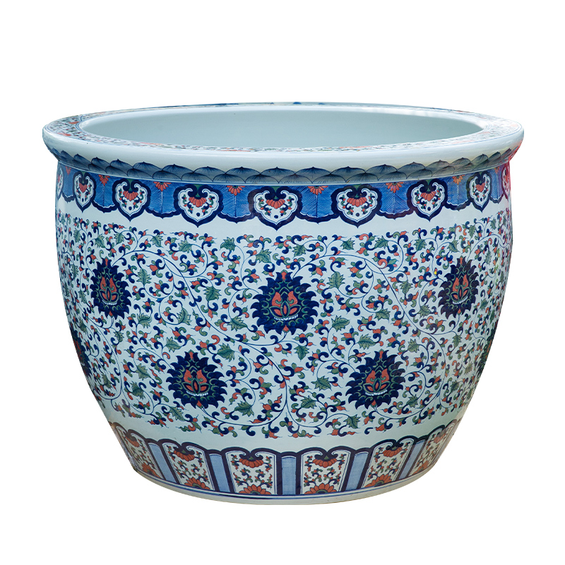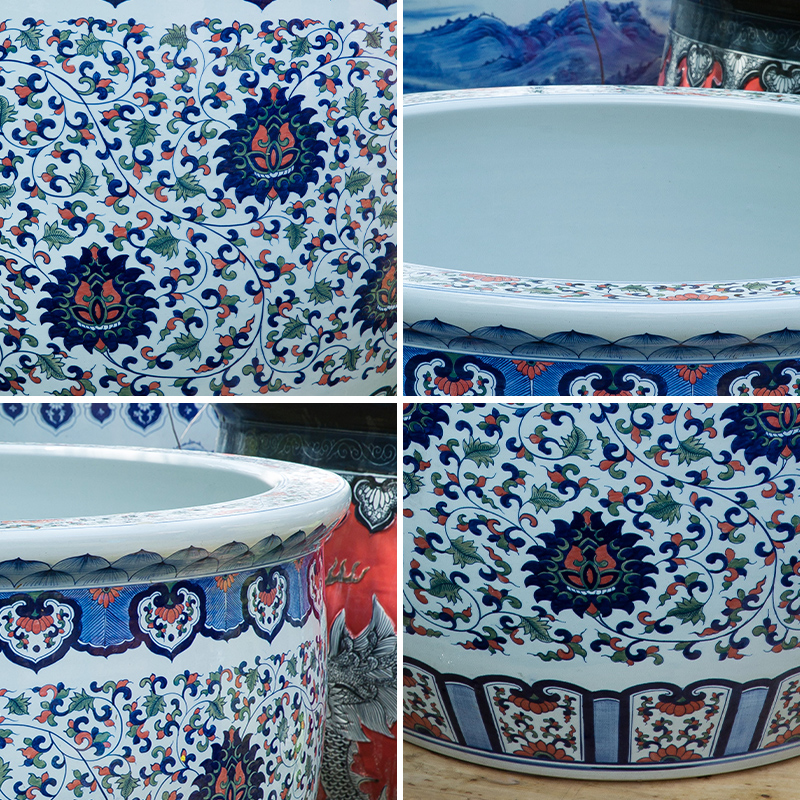 Ceramic Large-cylinder Courtyard Planted with View Large Number 1 2 m Ceramic floor pendulum piece Living room Fish Brocade Carp Flower Pot