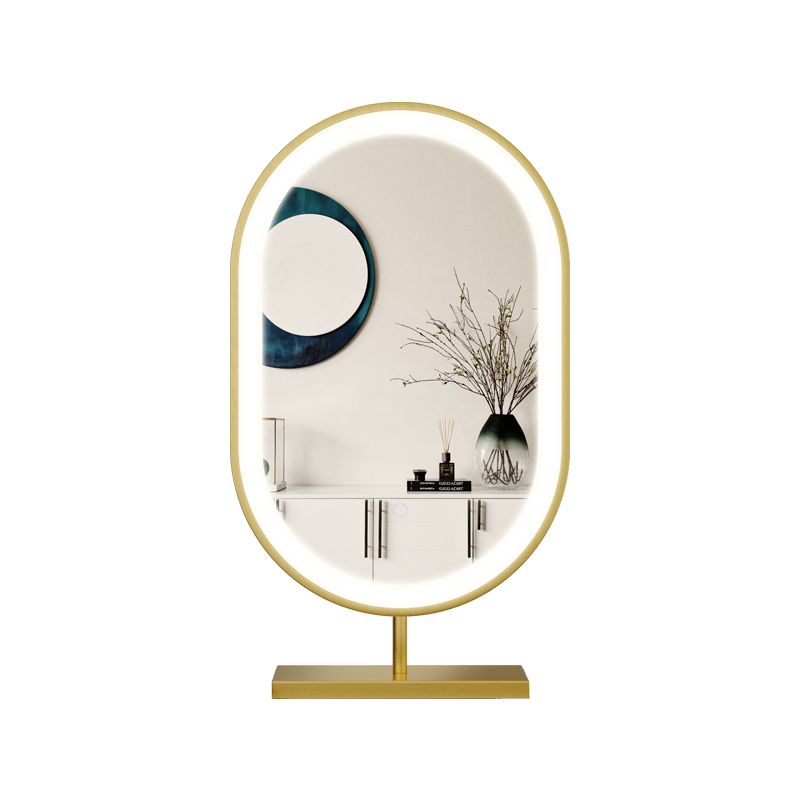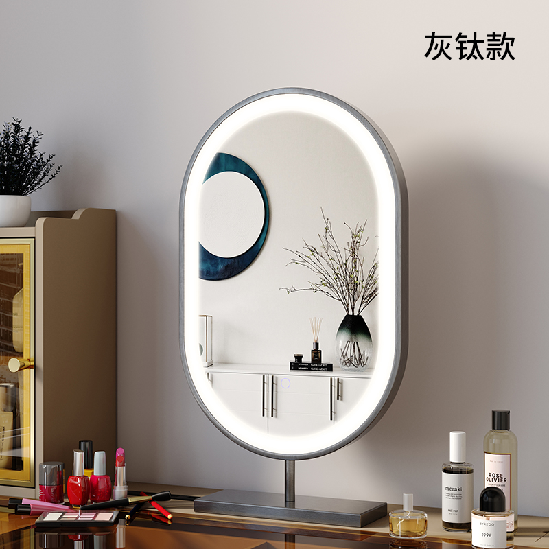 Stainless Steel Dresser Makeup Mirror Makeup Mirror tricolour led with lamp Desktop Desktop Tonic Light Smart Mesh Red Mirror Ins Big-Taobao