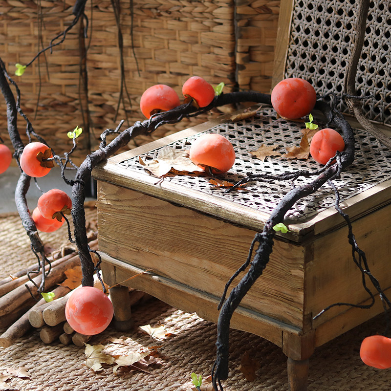 Simulation Vines Tomatoes Fruits Twigs Fruit Twigs Fruit Twigs Plant Wall-mounted Persimmon Pan Rattan Landscape Props Decorate Fake Trees