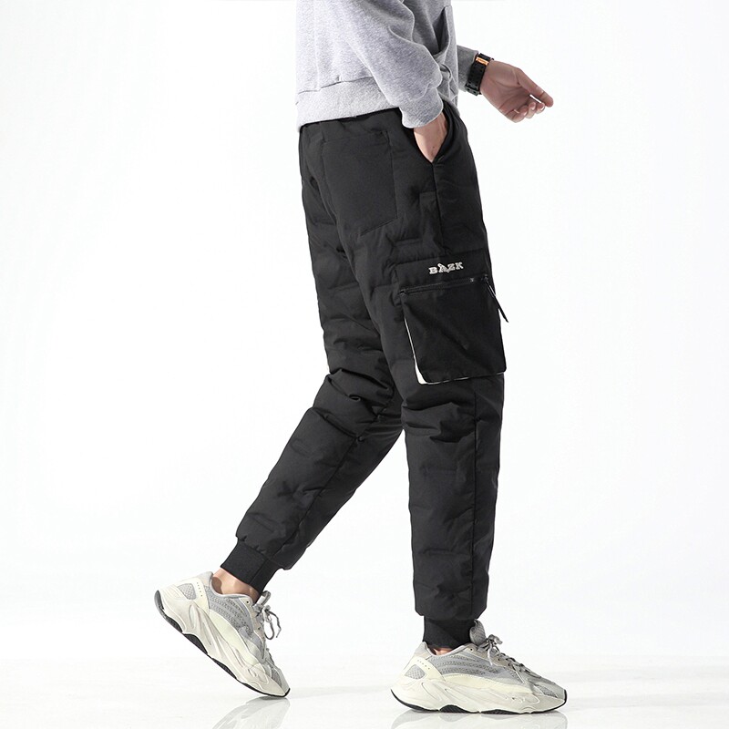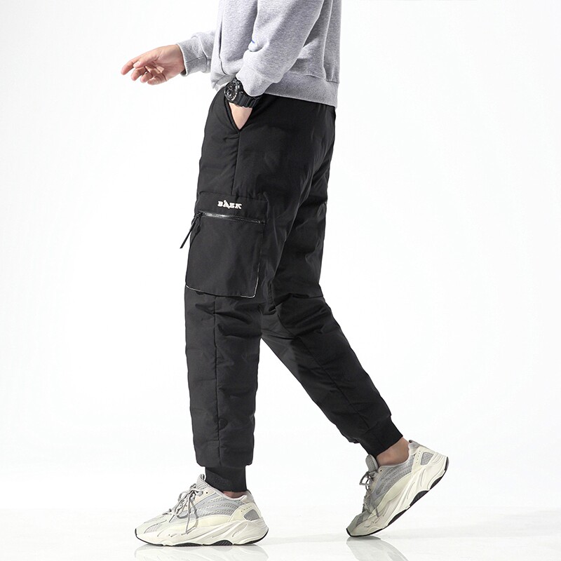 2021 winter trend plus velvet warm anti-cold thickened casual pants men's loose tooling drawstring sports trousers
