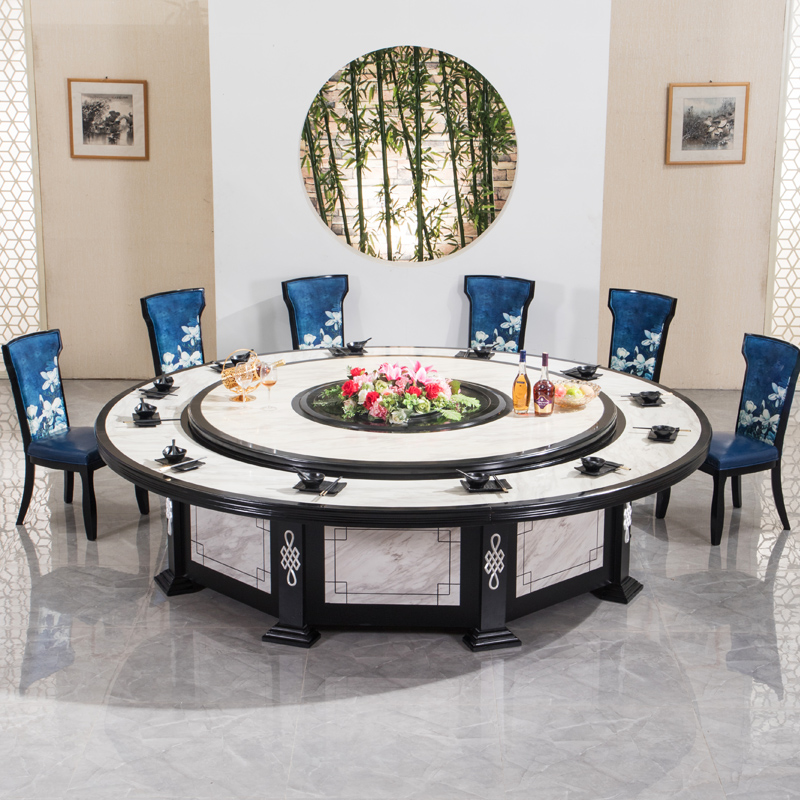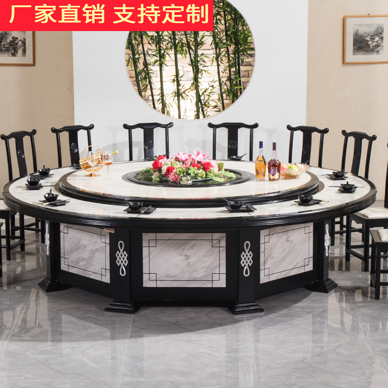 Hot pot table induction cooker integrated turntable large round table commercial restaurant smoke-free electric hotel hot pot table and chair combination