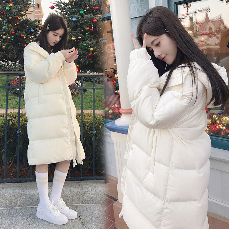 French maje Ju Jingyi same coat 2021 winter white duck down over the knee long white down jacket women