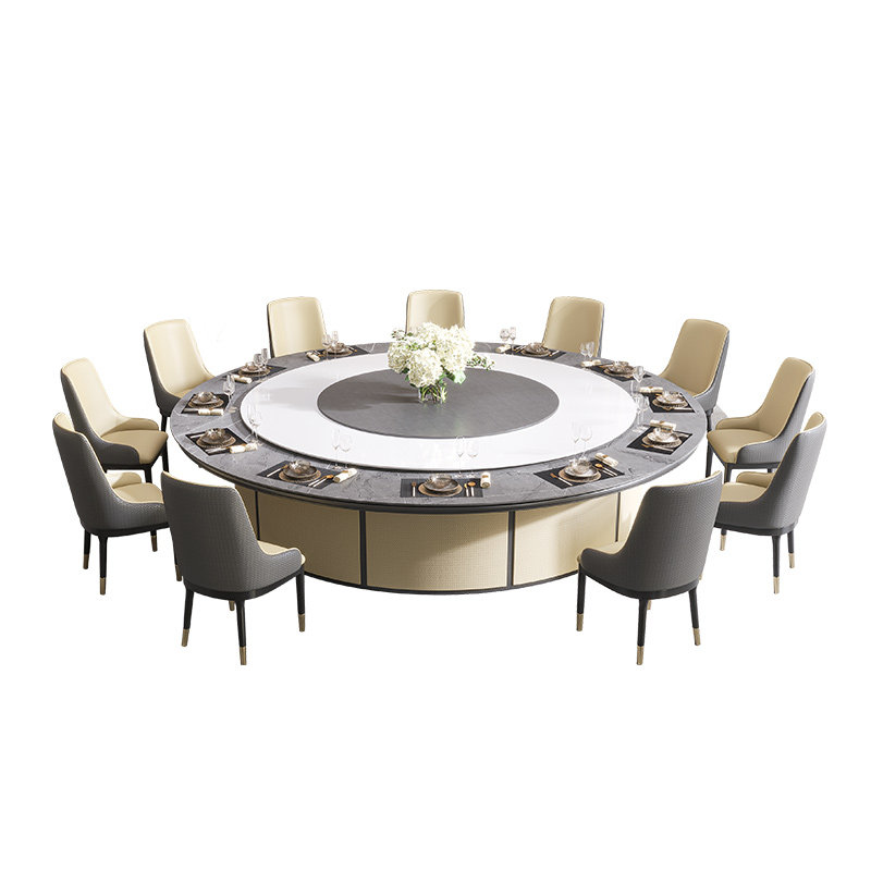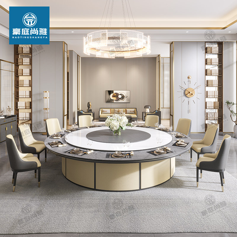 Hotel club luxury large round table dining room invisible induction cooker solid wood electric hot pot table commercial dining table and chair combination