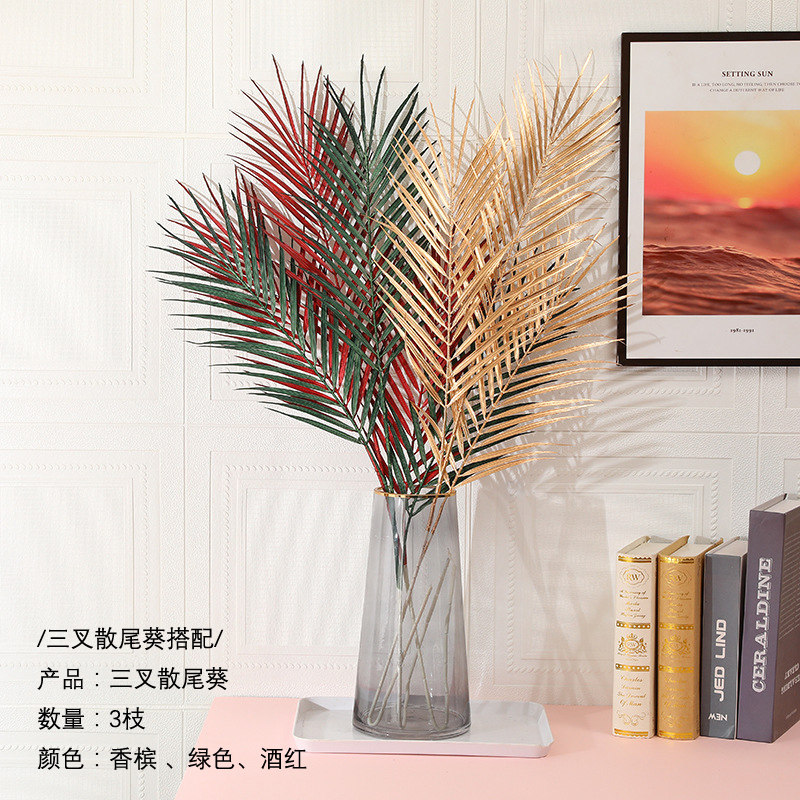 Green plant simulation palm leaf single scatter tail sunflower leaf fake flower home wedding photography props flower arrangement living room decoration