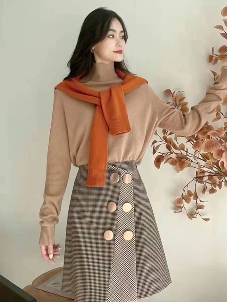 Brother's new 2022 autumn high waist plaid skirt A-line skirt 1200264-4K10243-001