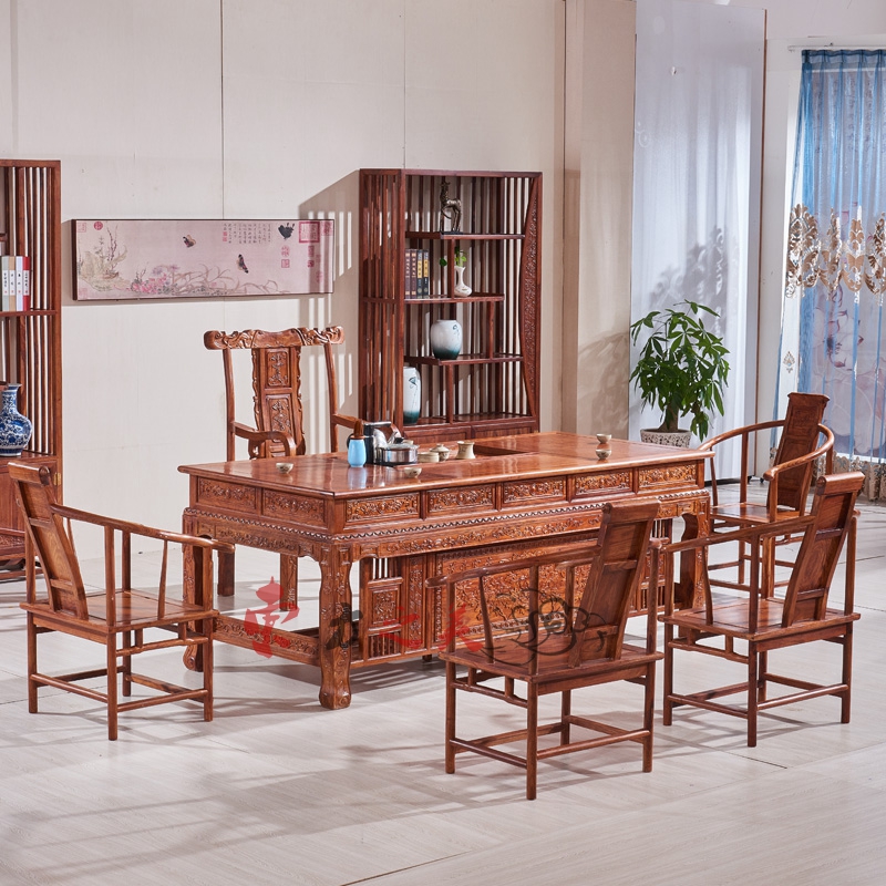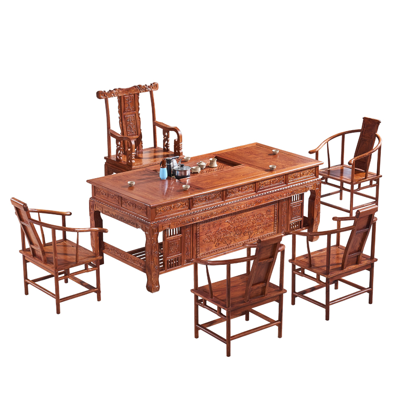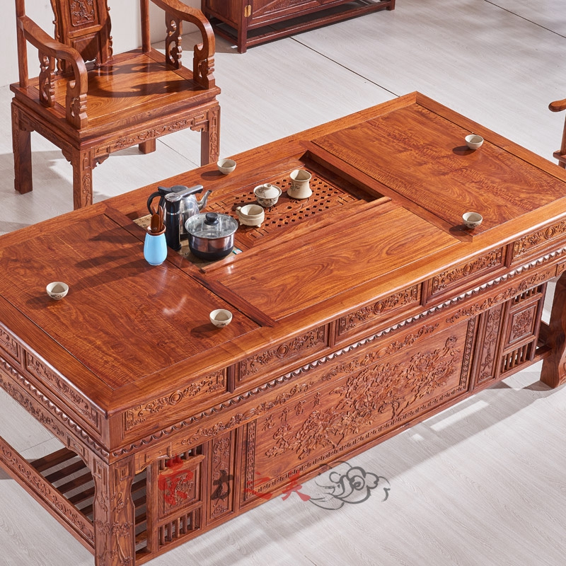 Red wood tea table tea table chair group of Chinese style solid wood power tea table tea table tea art flower pear wood hedgehog purple sandalwood desk