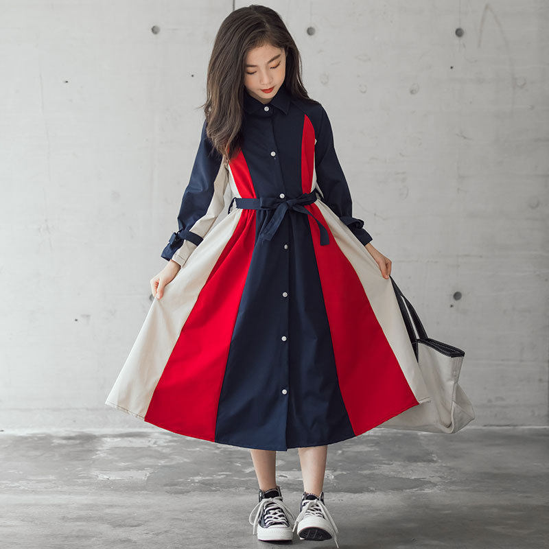 Girl Foreign Dress Spring Clothing Korean version CUHK Scout Coloured collection waist lacing with knee large swing long skirt fall plus velvet