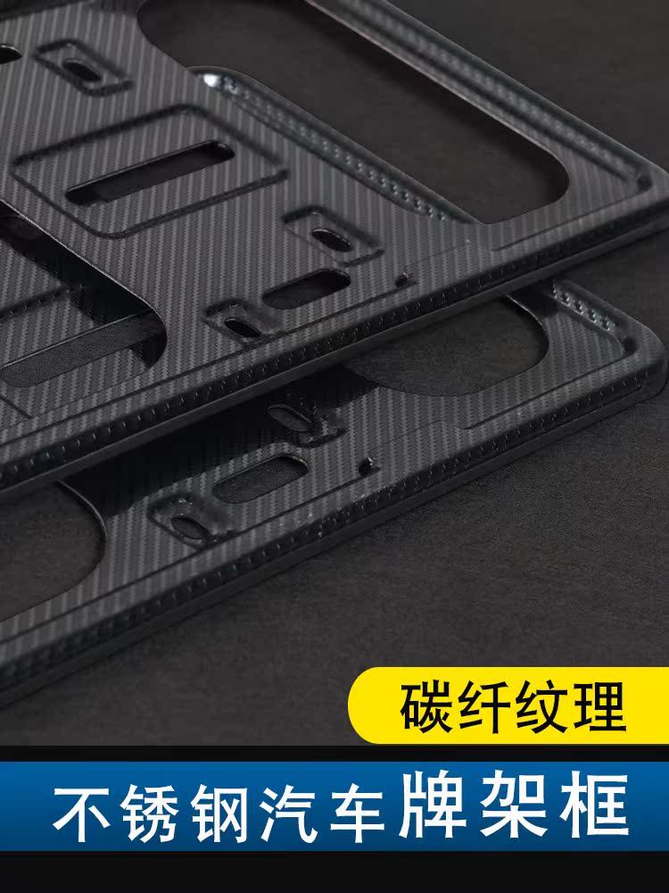License plate frame license plate frame protection frame carbon fiber pattern universal narrow side thin side thickened stainless steel license plate frame - Taobao