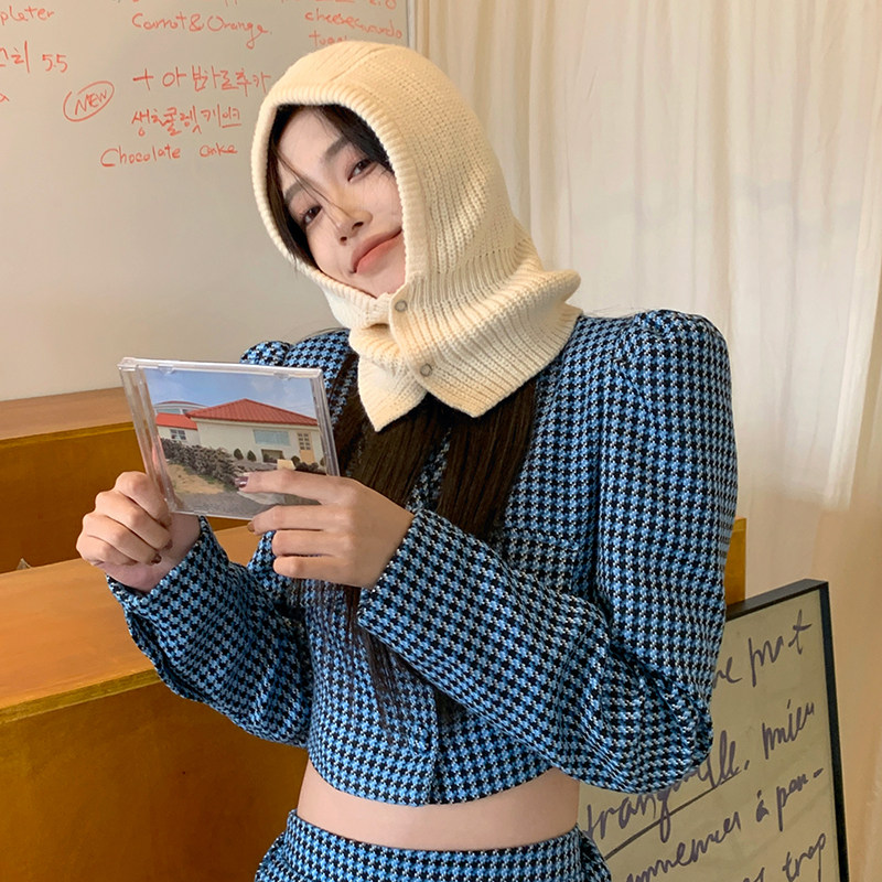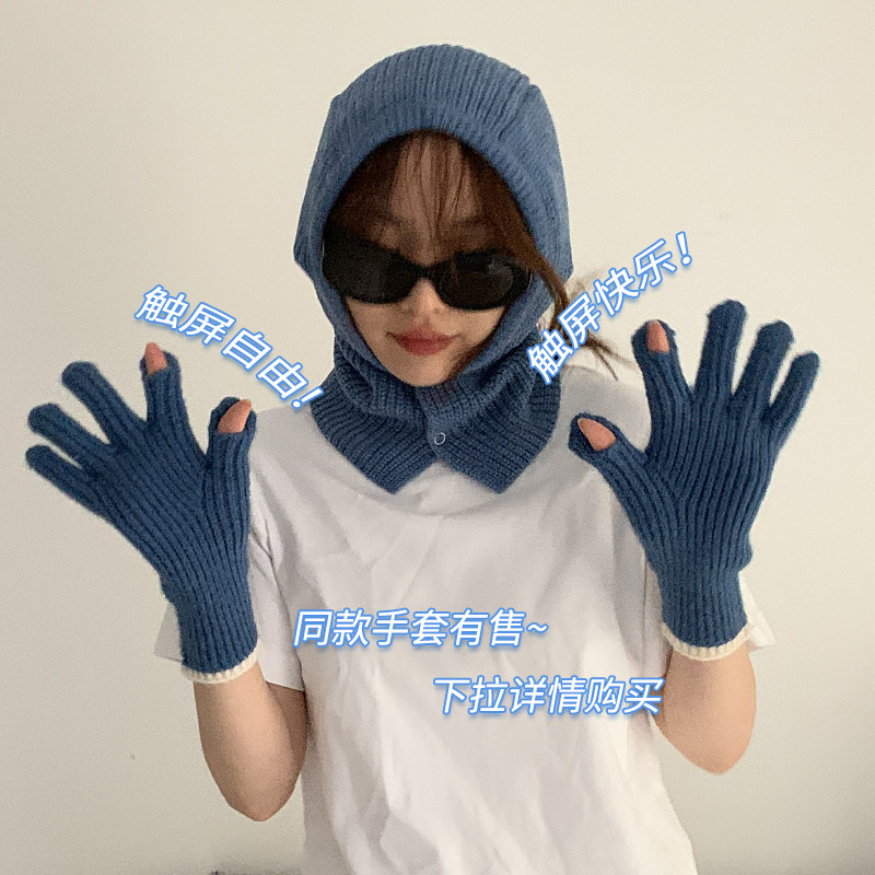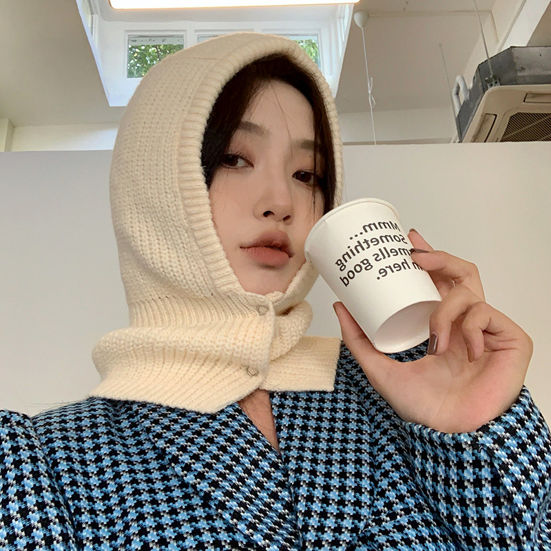 Korean hood one-piece Balaclafa hat women's winter bag head cover bib scarf knitted woolen pull hat