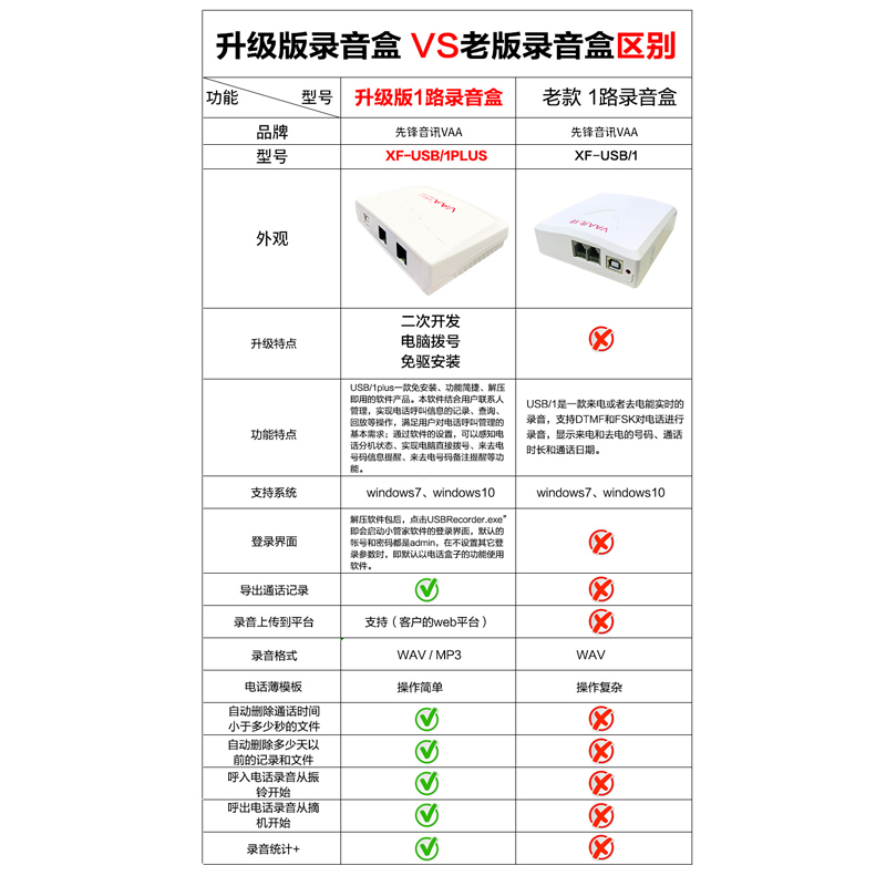 Pioneer (VAA)-USB 1PLUS phone recording box single-channel recording box 1-channel recording box automatic recording