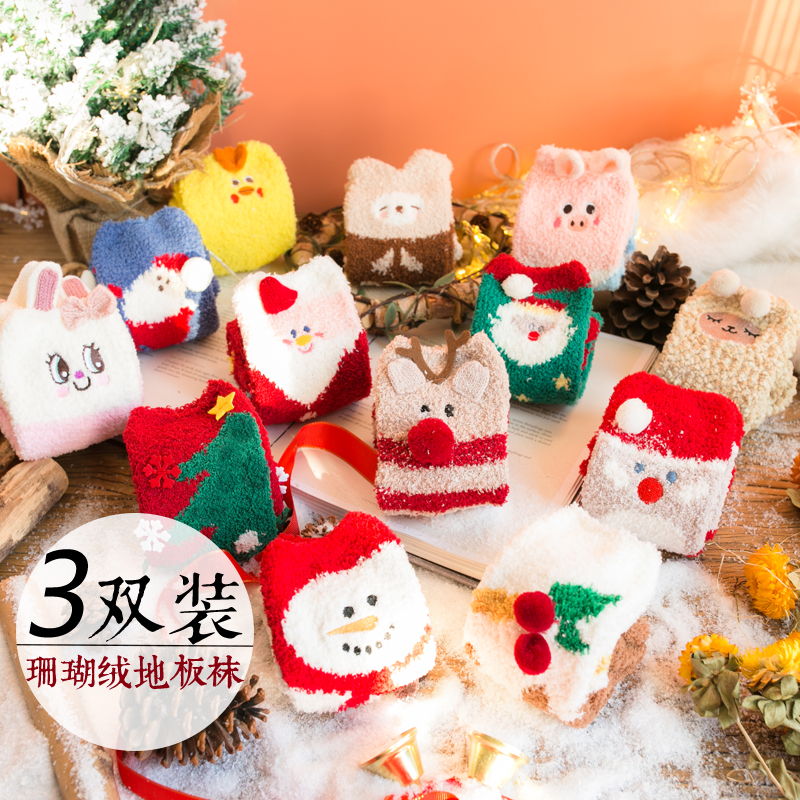 Christmas Socks Children Coral Suede Midtubes Socks Moon Thickened Warm Towels Floor Socks Autumn Winter Style Plus Suede Sleep Socks