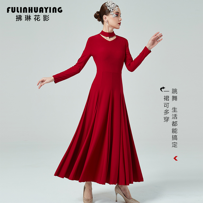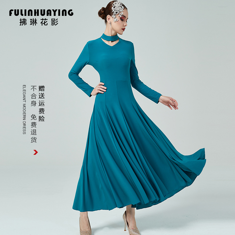 Marlene Flowers National Benchmark Dance Dress New Social Dance Foreign Dress Long Sleeve Standardwalk Morden Dress Waltz Dance Suit Woman