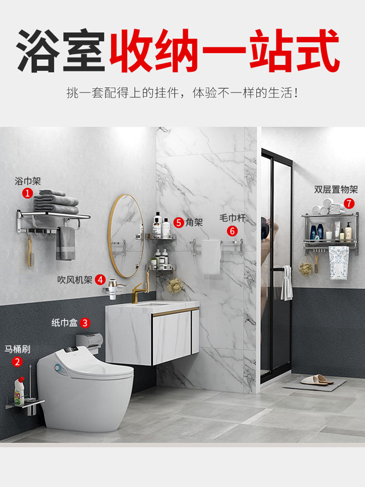 Jiumeiwang official website folding towel rack free punch powder room stainless steel bath towel rack bathroom rack wash five